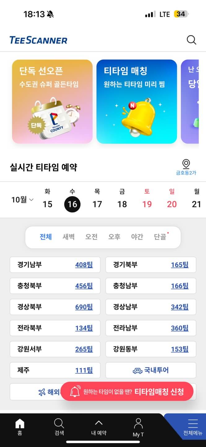 👉 더욱 간편해진 홈(원하는 티타임 검색창 추가/가독성개선하여 직관적)