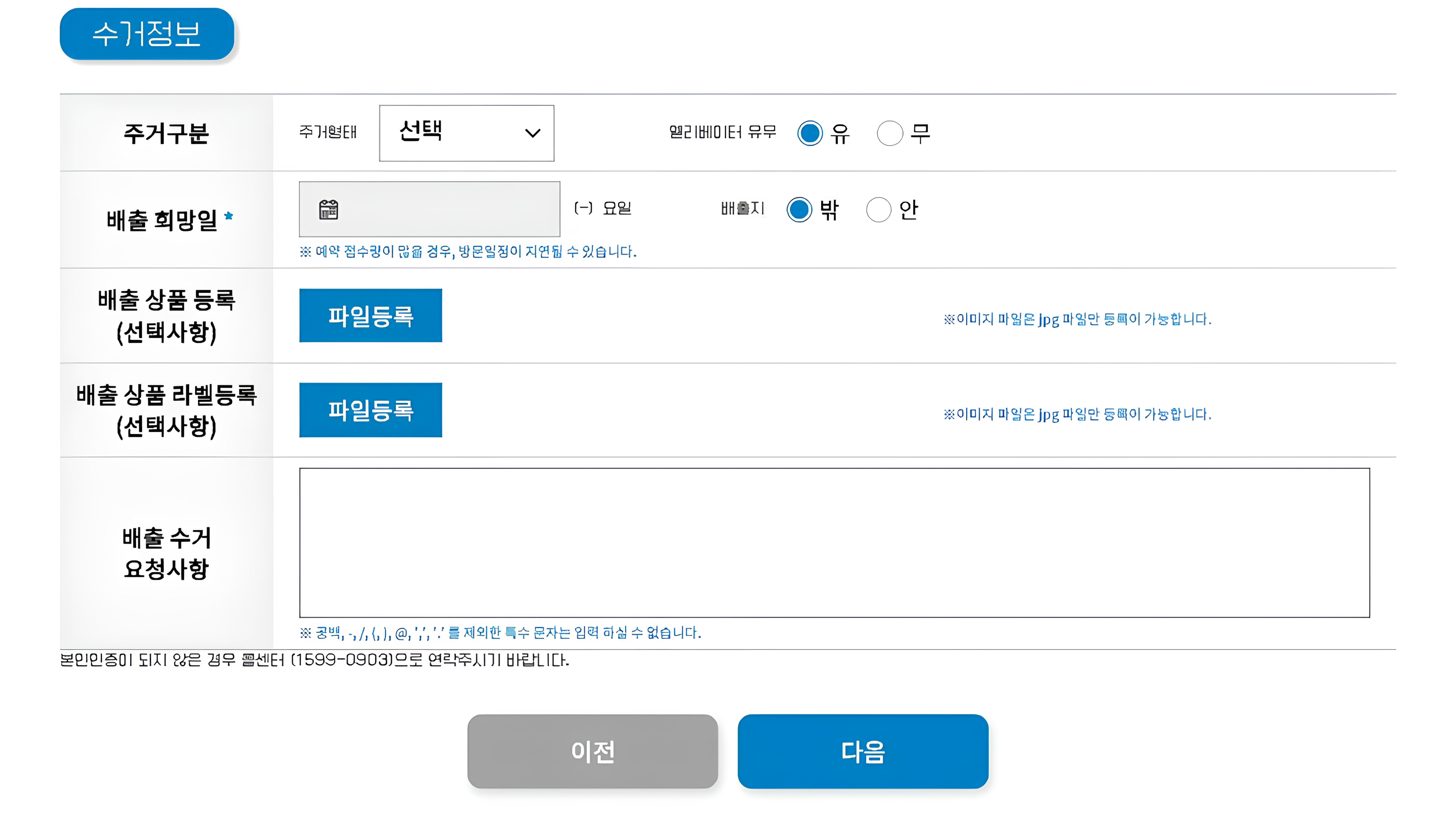 ✔️ 기본정보입력 이름/전화번호/주소등/배출 희망일자/폐기할 가전제품 정보