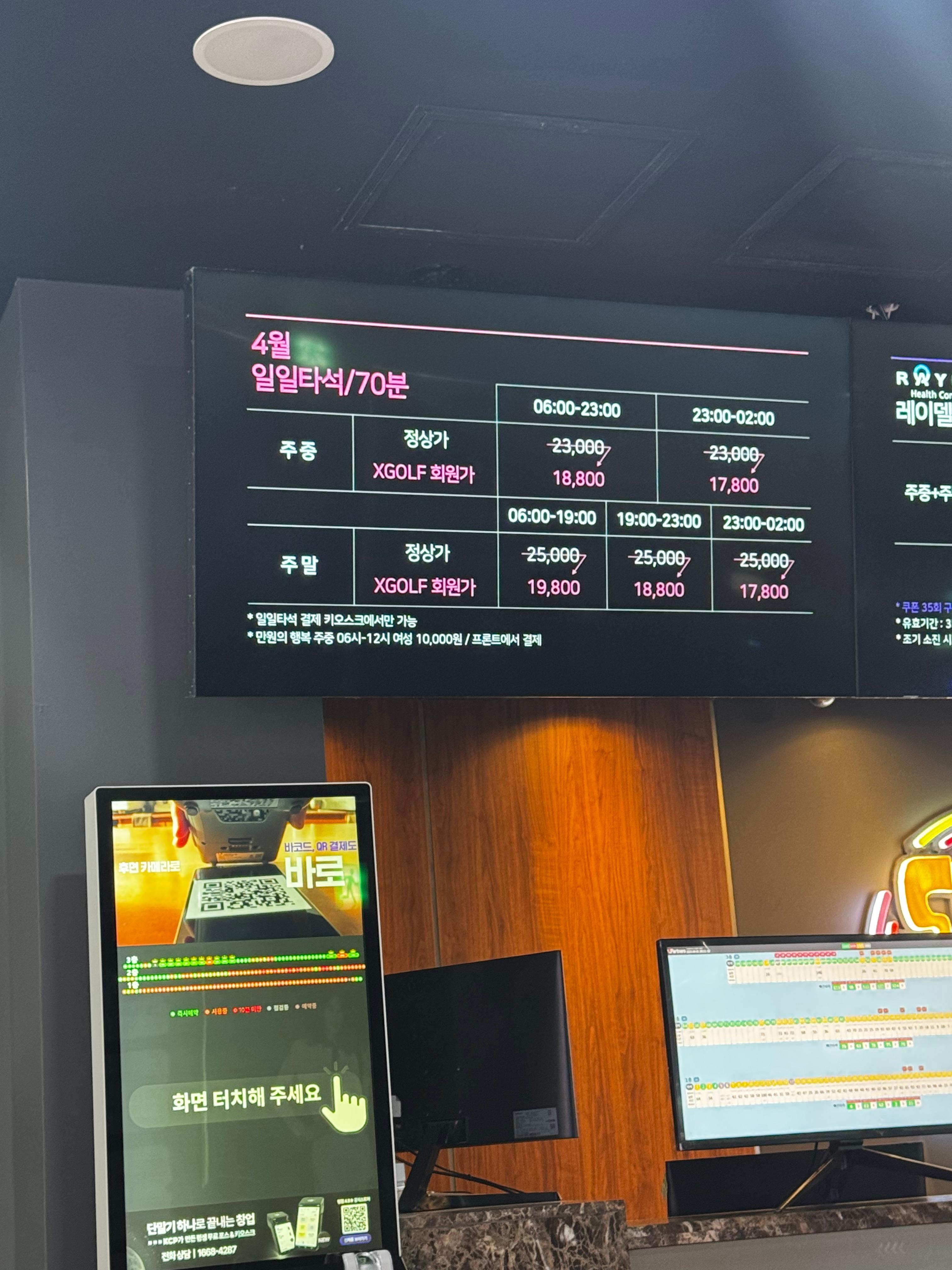 - 주중(06시~23시): 18,800원(XGOLF 회원가), 정상가격은 23,000/70분 기준