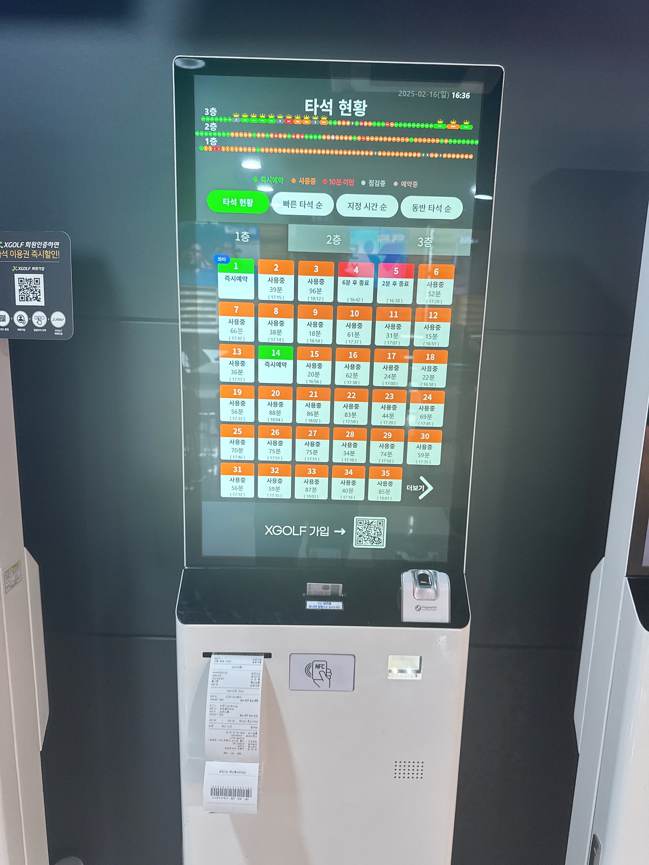 현장에서 키오스크를 통해 결제하거나, X-Golf 앱을 통해 예약한 경우 프런트에서 결제를 완료합니다.