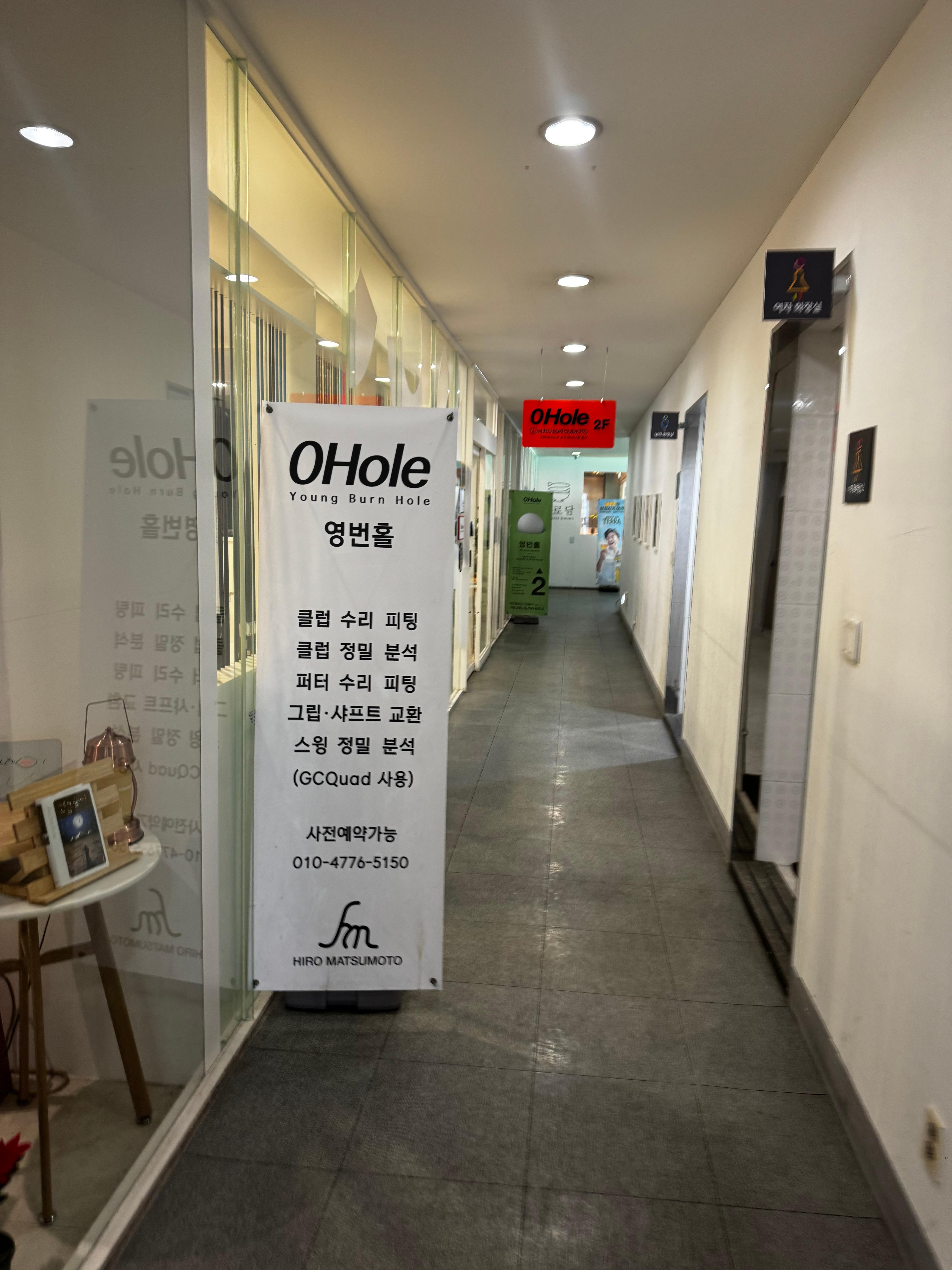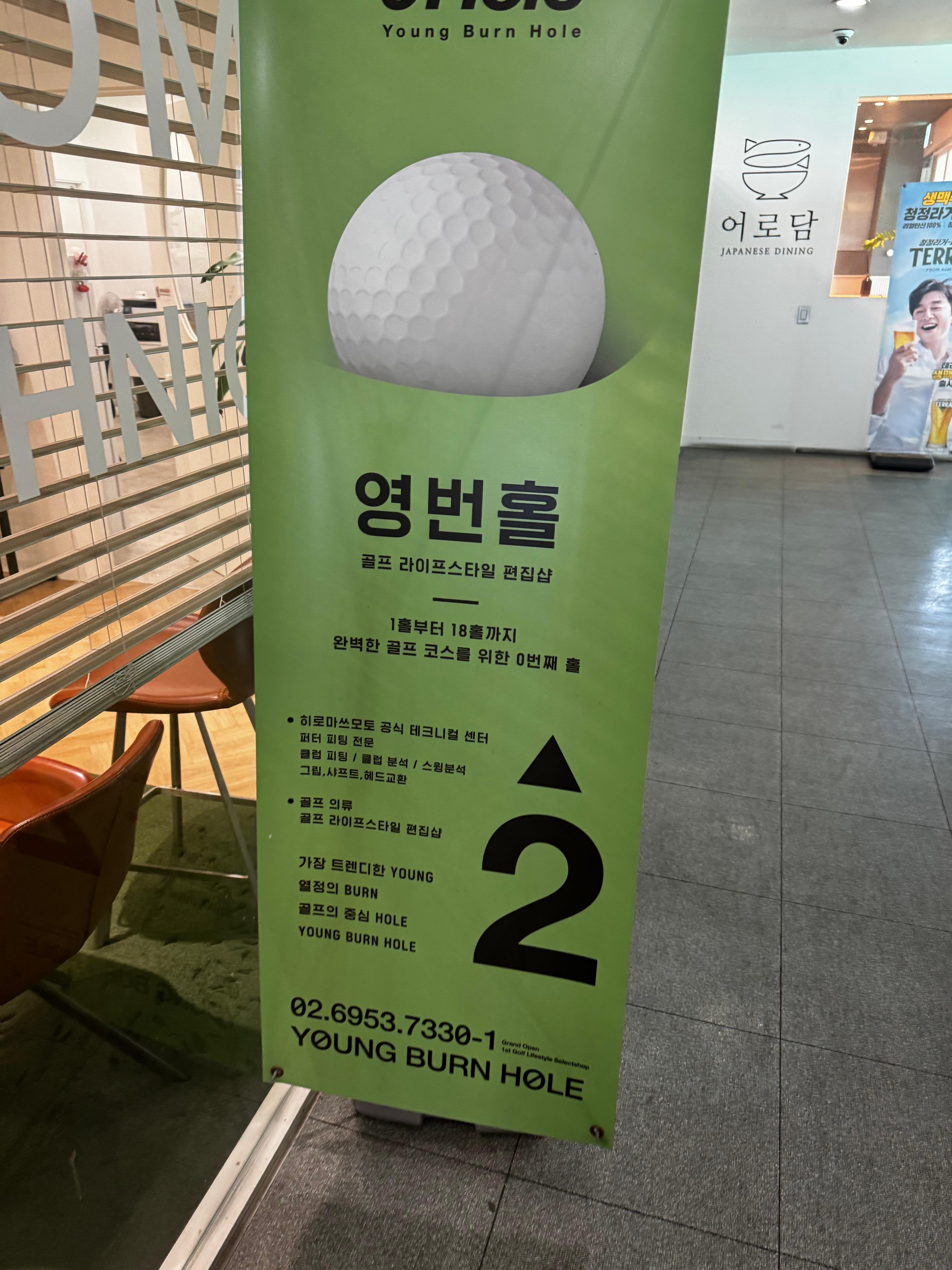 2F 영번홀 골프피팅 클럽분석 스윙분할 수 있는 곳이며, 식당은 어로담 일식 식당도 이용가능합니다. 참고로 2층에 탈의실 및 안마의자등 휴게공간도 마련되었습니다.