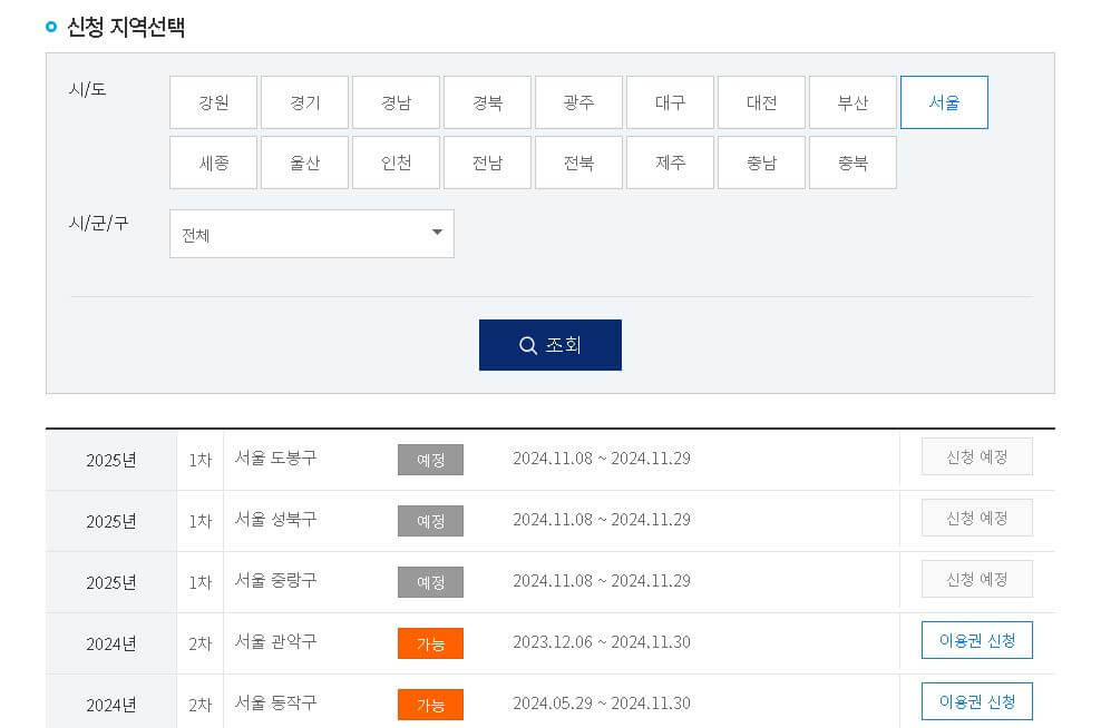 방문신청은 관할 시/군/구 행정복지센터에서 신청가능합니다.