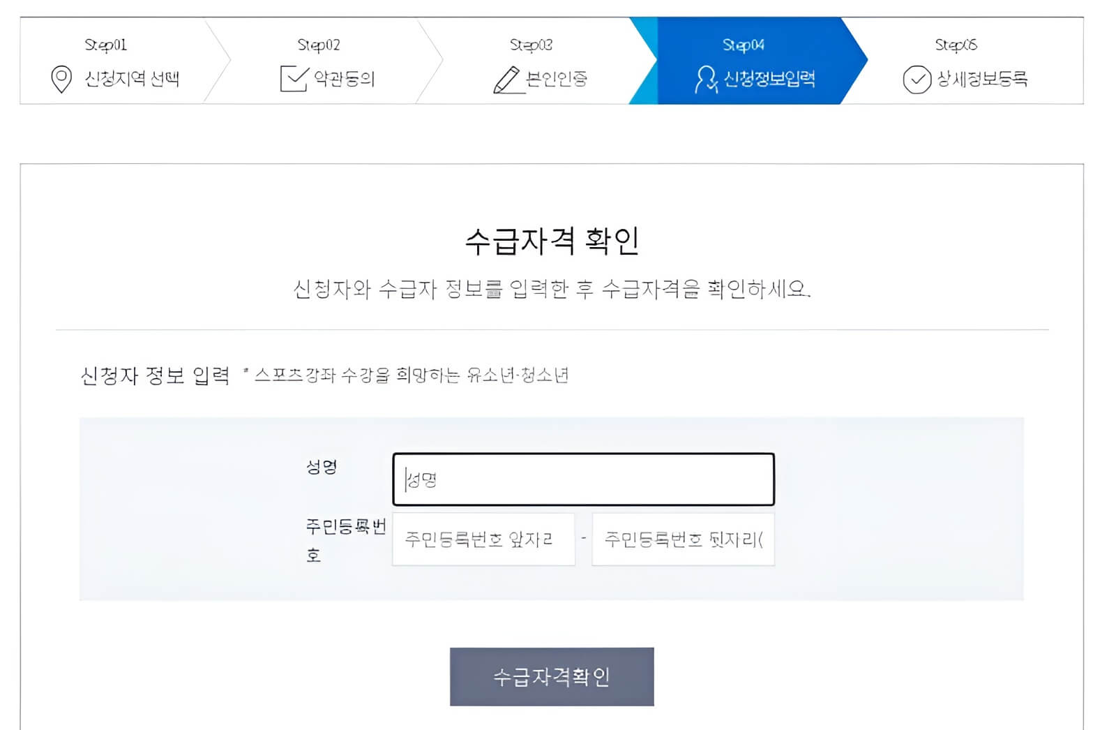 스포츠바우처는 기초생활수급자 및 차상위계층의 유소년만 신청할 수 있습니다.