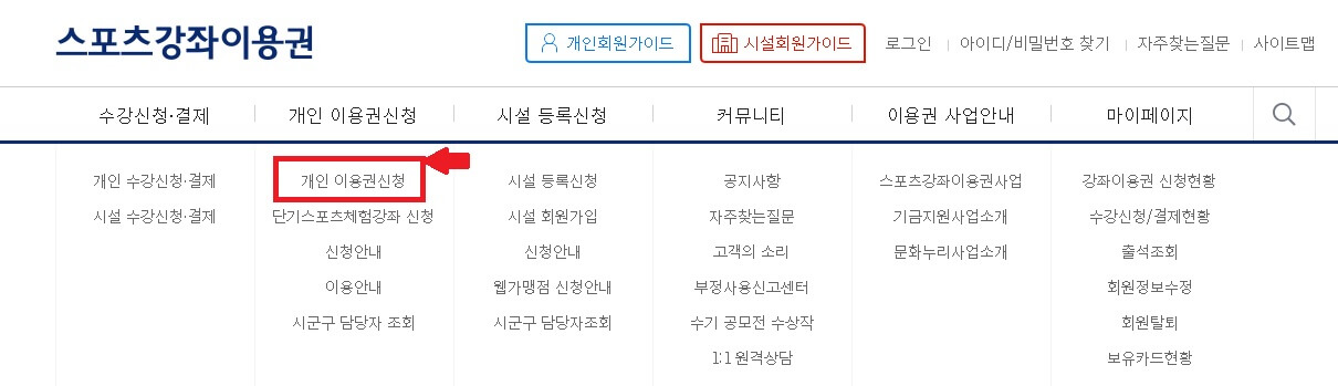 ▶️ 스포츠강좌이용권 사이트 - 개인이용권 신청