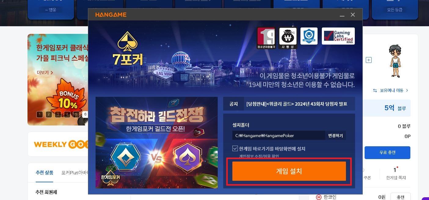 한게임포커설치 방법(PC)
