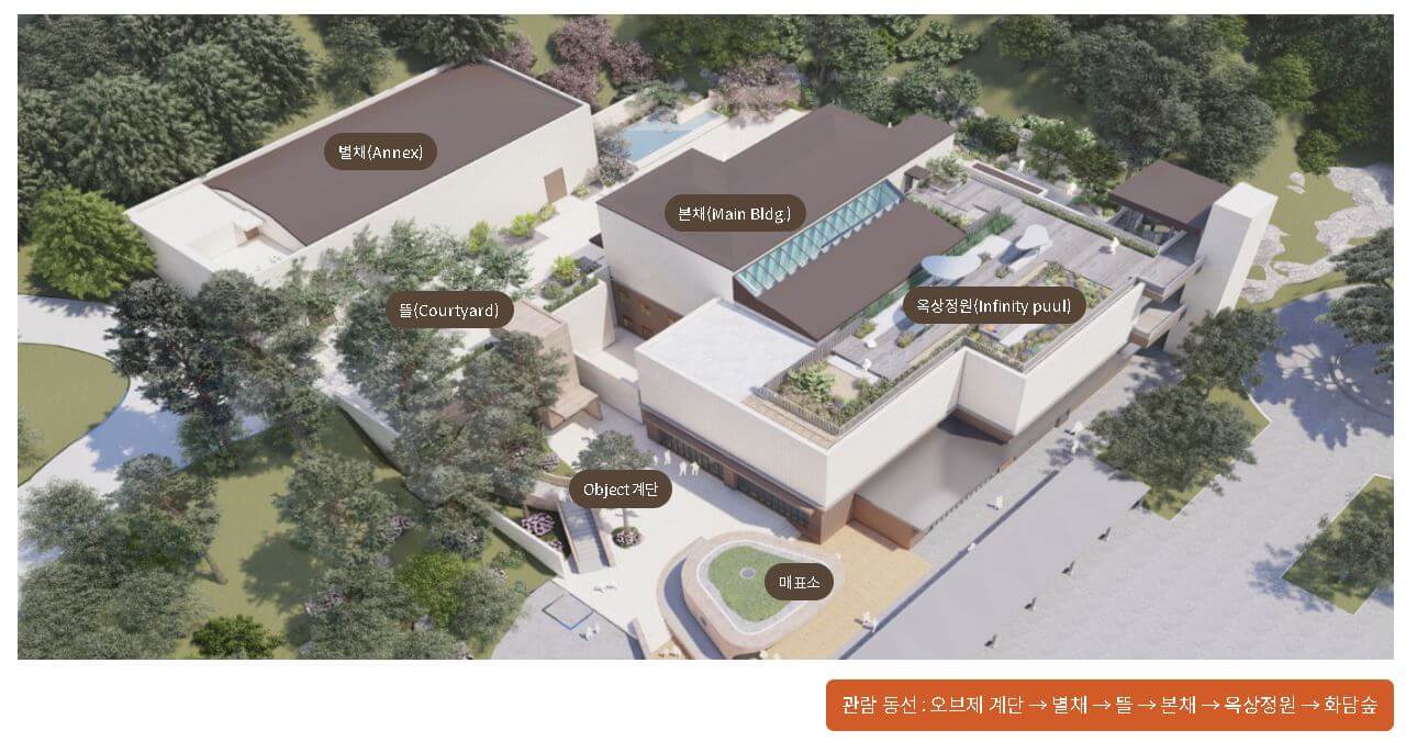 * 관람동선 : 오브제계단- 별채 - 뜰 - 본채 - 옥상정원 - 화담숲