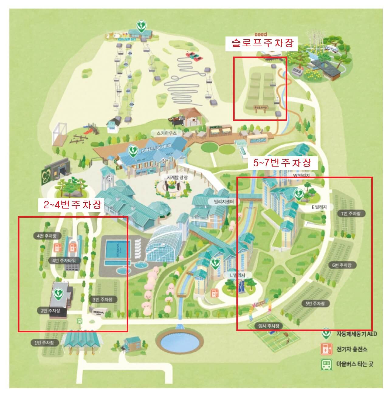 👉 5~7 구역 주차장 - 리조트 투숙객전용이나 단풍시즌에서는 주차장 가능(도보 19분 소요)