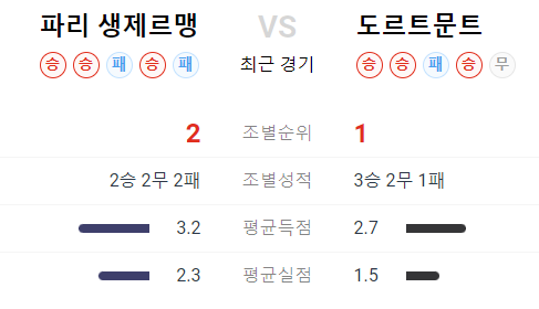 승패는 도르트문트가 유리하진 파리 생제르맹이 우세되는 상황입니다.