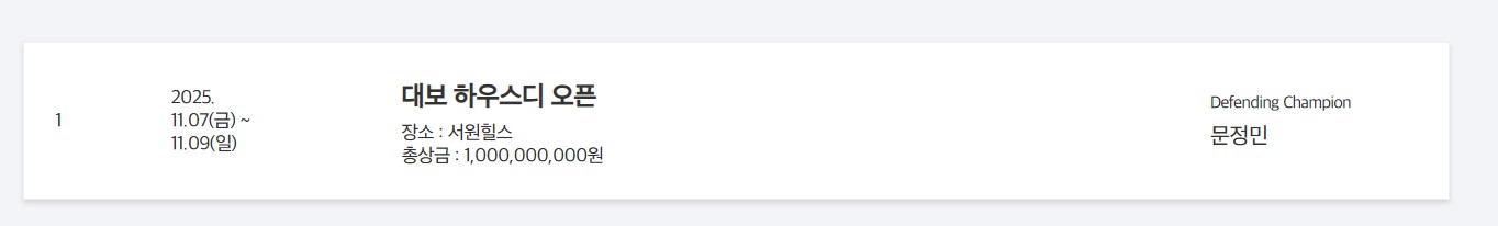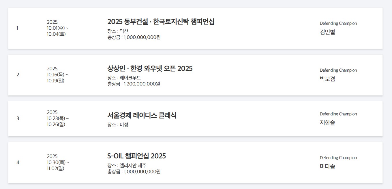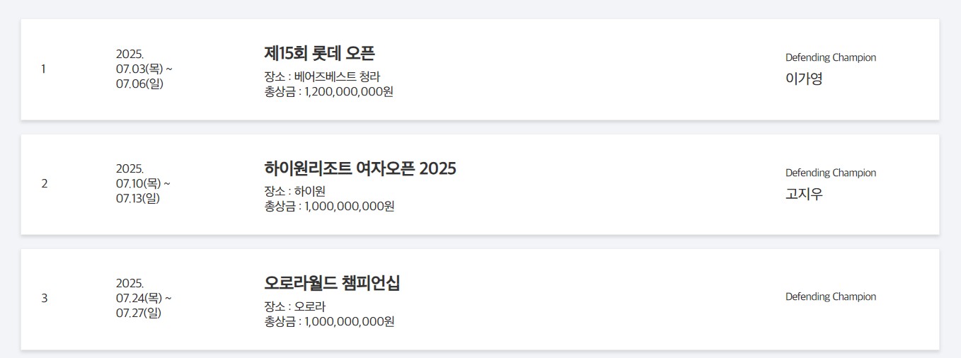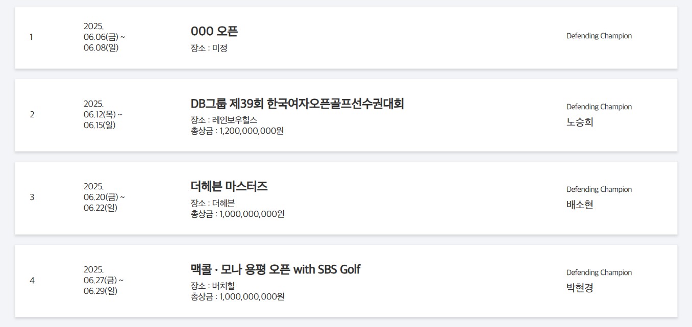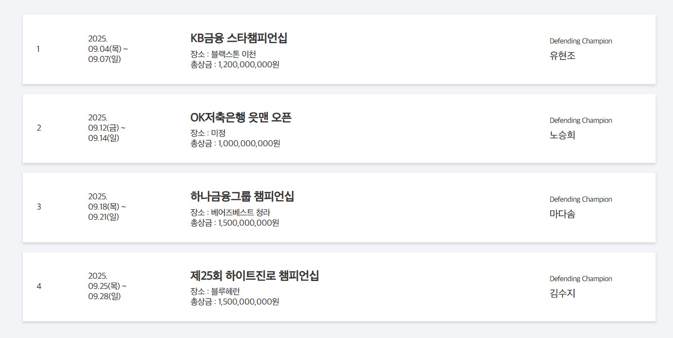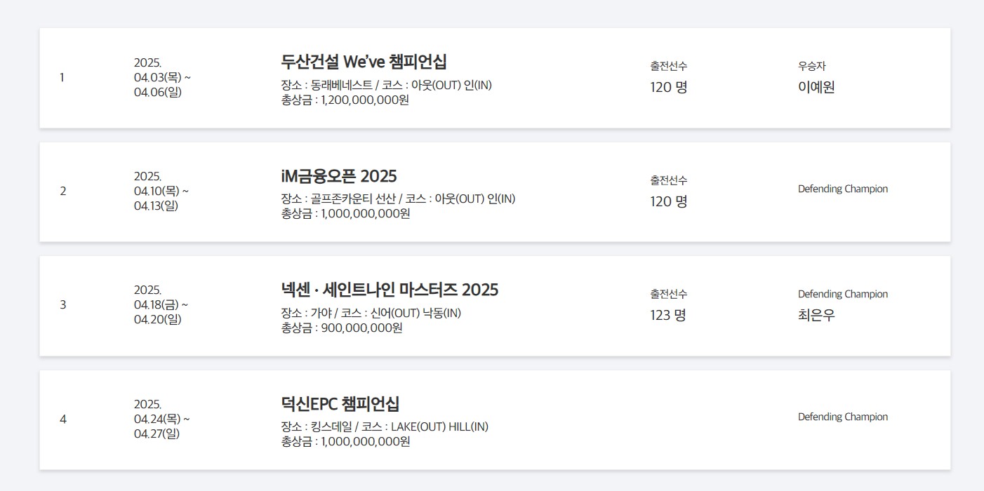 👉신설 대회: iM금융 오픈, 덕신 EPC 챔피언십, 오로라월드 챔피언십 등 3개 대회가 새롭게 추가되었습니다.