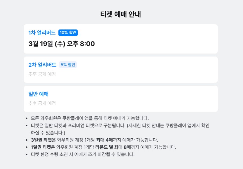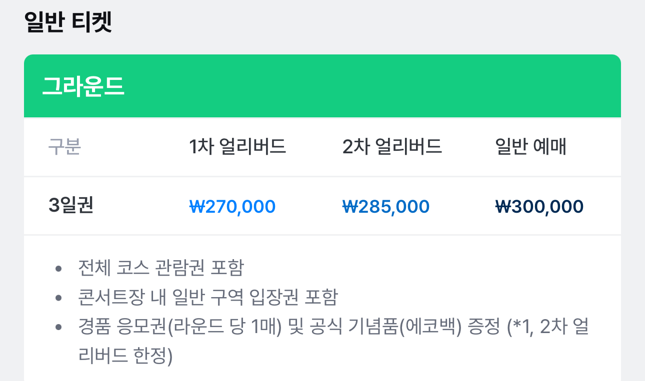 그라운드, 그라운드 플러스의 3일권 및 일부 프리미엄 티켓 구매자에게는 3라운드 종료 후 진행하는 콘서트에 우선 입장할 수 있는 권리가 제공됩니다.